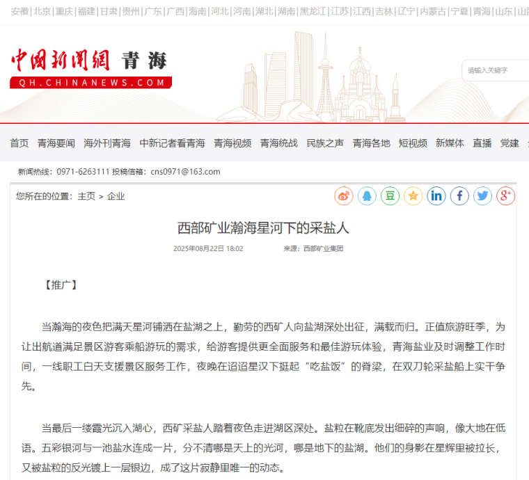 瀚海星河的見證下,巨大的鹽船載起西礦人“吃鹽飯”的發展夢,在廣袤鹽田里騰起巨浪、破浪前行。從白天的守護到夜晚的耕耘,他們讓茶卡鹽湖在兩種身份里從容切換。當東方泛起魚肚白,伴隨他們身上的斑駁鹽霜,身后的鹽堆又高了一分,懂感恩、有情懷、重實干的西礦人正踩著鹽粒鋪就的大道感恩奮進、實干爭先,每一粒鹽都閃耀著奮斗的光芒。(完)