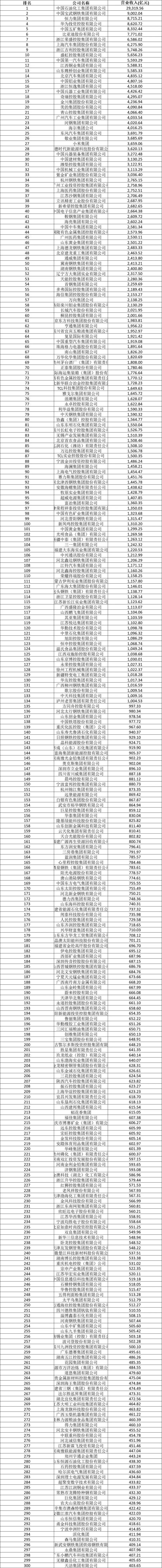 2025中國制造業(yè)企業(yè)500強(qiáng)