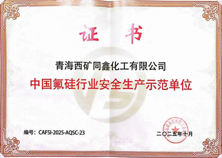 自投產運營以來,同鑫化工公司連續五年保持國家安全生產標準化三級達標認證,2025年以940分的安全風險自查評分獲評行業低風險企業,成為青海乃至西北氟化工領域安全發展的“優等生”。此次榮獲行業安全榮譽,既是國家權威機構對公司安全管理成果認可,也是對公司為行業輸出“可復制、可推廣”安全經驗的褒獎。