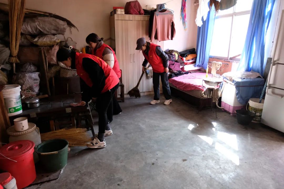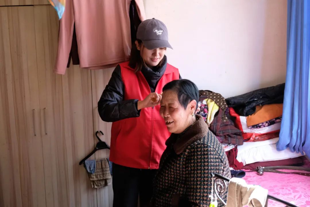 “大娘,您家里的水不多了,我去幫您打水吧……”在小龍院村,志愿者們深入獨居老人家中,有人幫忙打掃衛生,有人幫忙打水燒炕,還有女孩子細心的為老人梳起了頭發。看著家里熱火朝天的景象,老人感動地表示:“連我的兒子都沒這么照顧過我……”幫助老人打理好家中的一切后,志愿者們為老人送上慰問金和滿滿的祝福,在老人戀戀不舍的挽留中,奔赴其他孤寡老人家中。